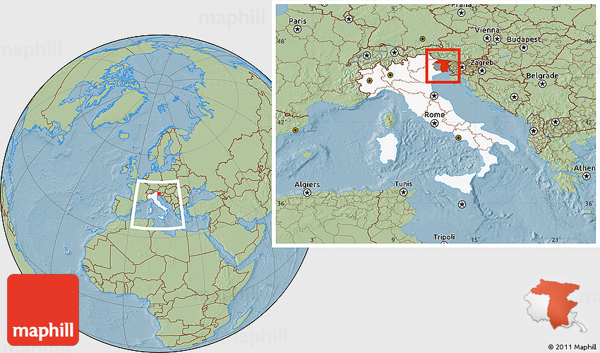 Each map type offers different information and each map style is designed for a different purpose. Read about the styles and map projection used in the above map (Savanna Style Location Map of Udine, highlighted country, highlighted parent region, within the entire country, hill shading).