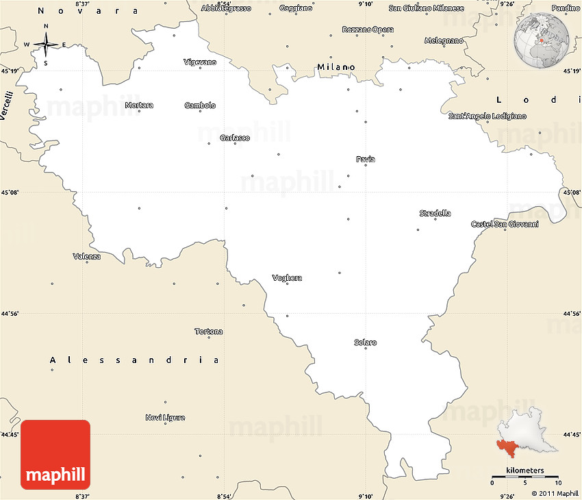 Maphill is a collection of map graphics. This simple outline map of Pavia is one of these images. Use the buttons under the image to switch to more comprehensive and detailed map types.