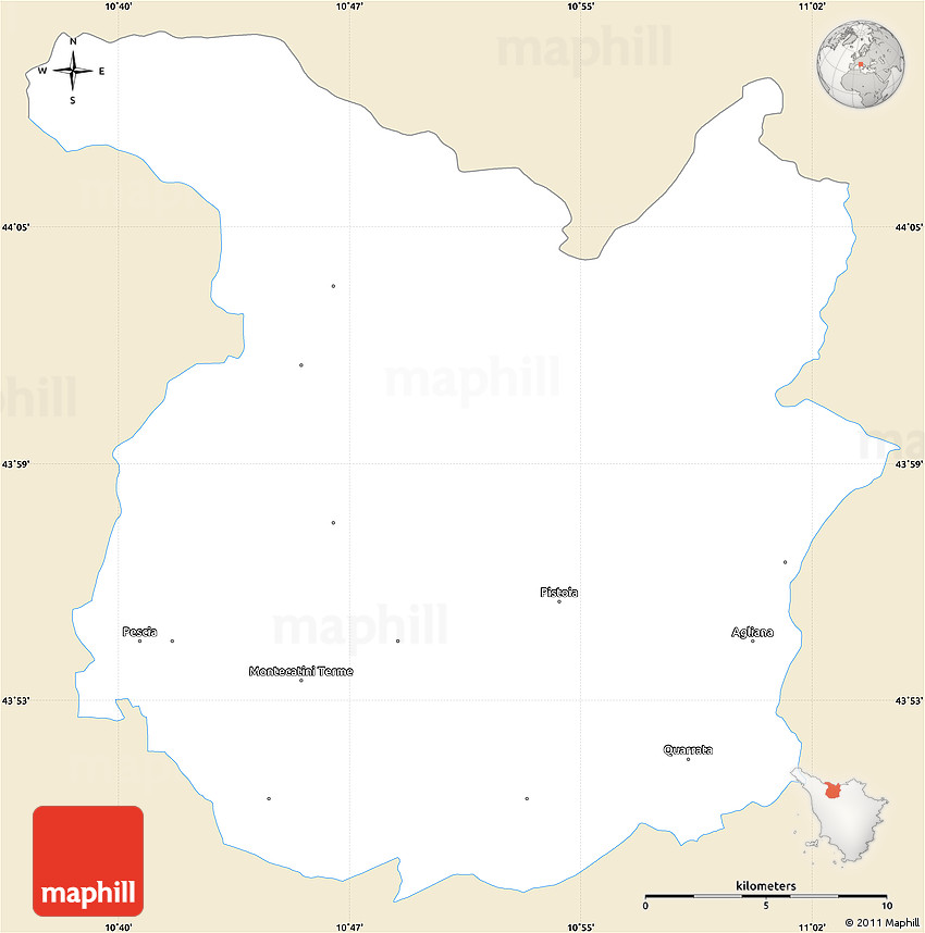 Maphill is a collection of map graphics. This simple outline map of Pistoia is one of these images. Use the buttons under the image to switch to more comprehensive and detailed map types.