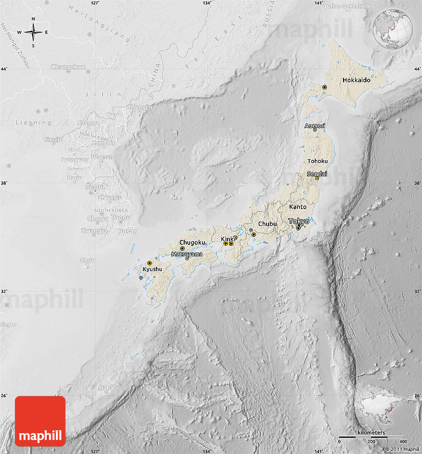 Maphill is a collection of map images. This shaded relief map of Japan is one of them. Click on the Detailed button under the image to switch to a more detailed map.