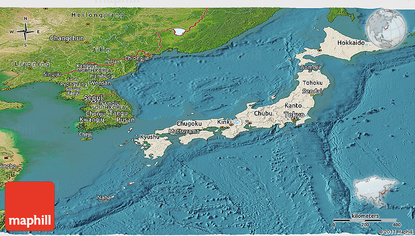 Satellite map shows the Earth's surface as it really looks like. The above map is based on satellite images taken on July 2004. This satellite map of Japan is meant for illustration purposes only. For more detailed maps based on newer satellite and aerial images switch to a detailed map view.