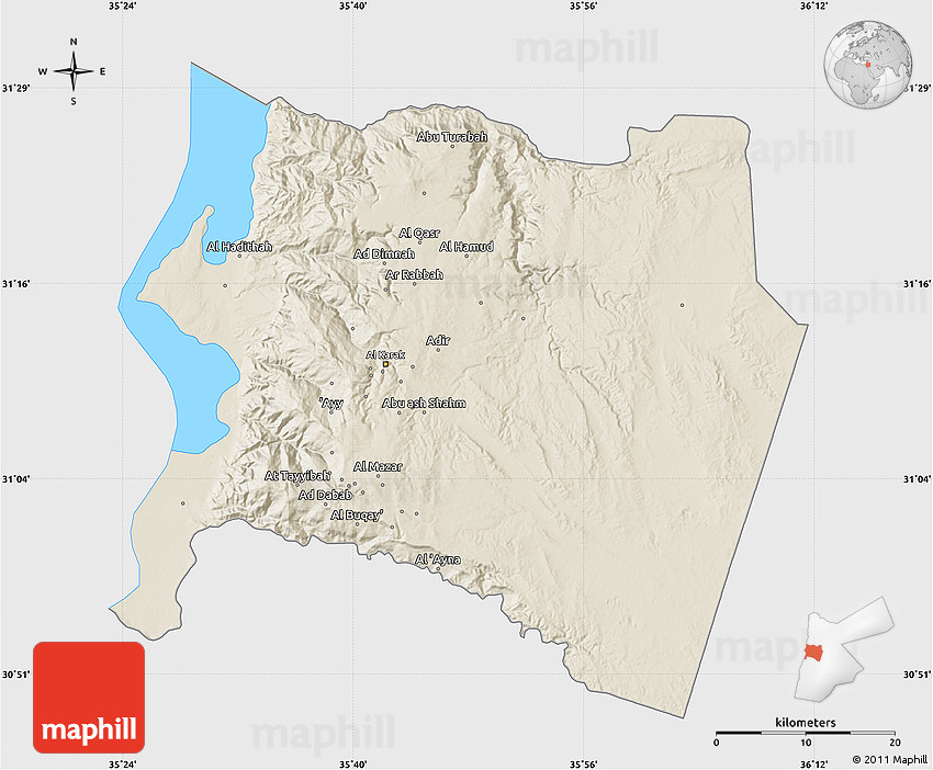 Embed the above shaded relief map of Karak into your website. Enrich your blog with quality map graphics. Make the web a more beautiful place.