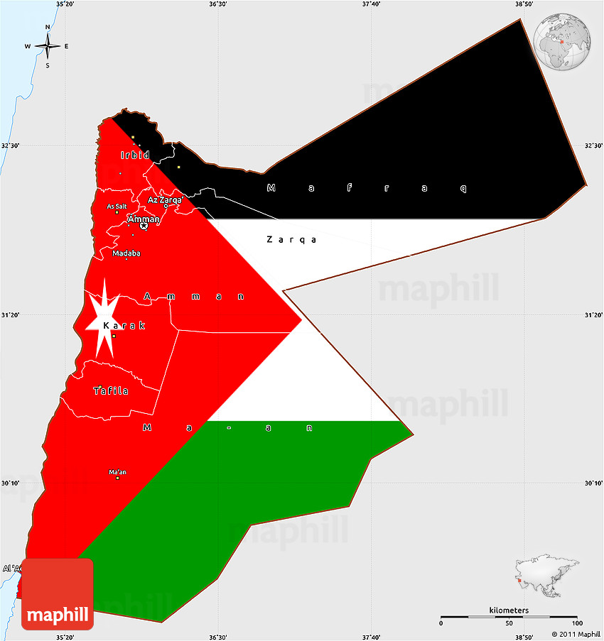 Embed the above flag simple map of Jordan into your website. Enrich your blog with quality map graphics. Make the web a more beautiful place.