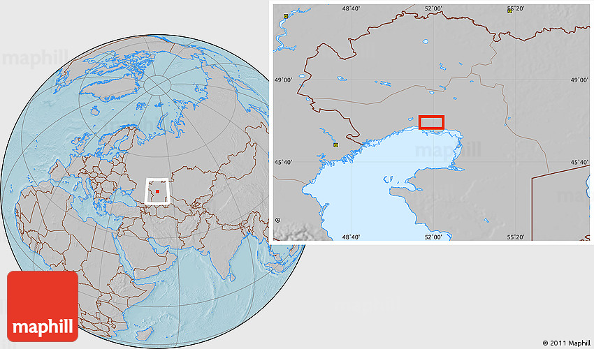 Maphill is a collection of map images. This image combines a gray map with the globe centered on Kurzhum. Use the buttons under the image to switch to different map types.