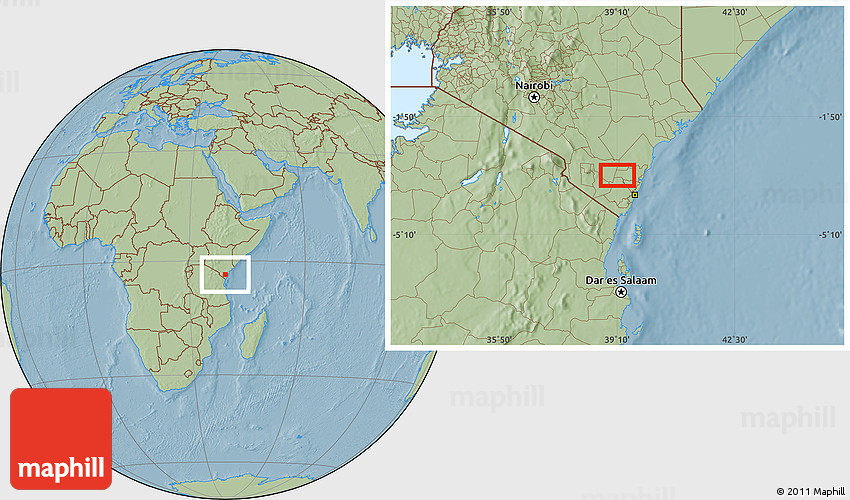 Maphill is a collection of map images. This image combines a savanna style map with the globe centered on Mapotea. Use the buttons under the image to switch to different map types.
