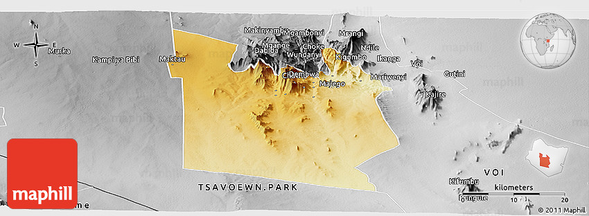 The panoramic physical map represents one of several map types available. Look at MWATATE, TAITA TAVETA, COAST, Kenya from different perspectives.