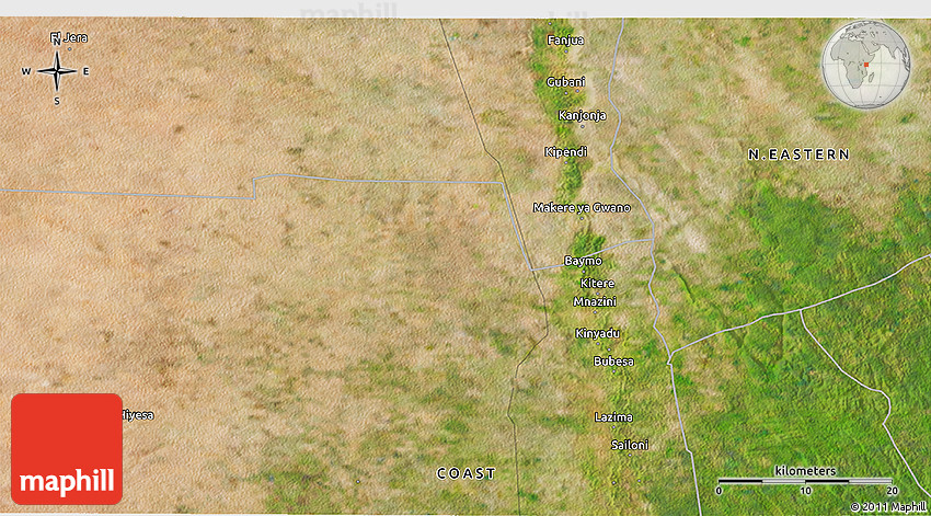 The 3D satellite map represents one of many map types and styles available. Look at Bubesa, GARSEN, TANA RIVER, COAST, Kenya from different perspectives.