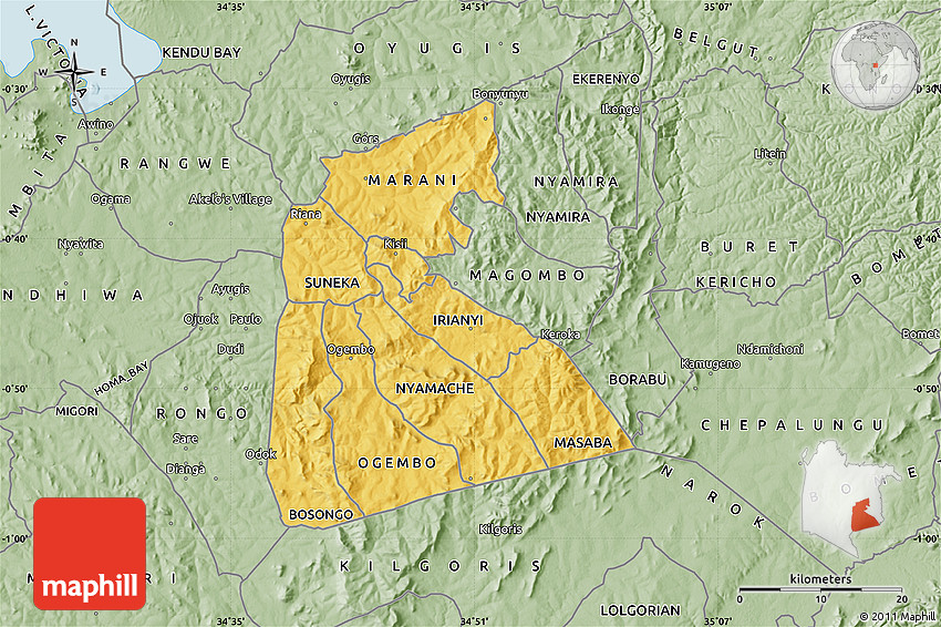 Maphill is a collection of map images. This savanna style map of KISII is one of them. Click on the Detailed button under the image to switch to a more detailed map.