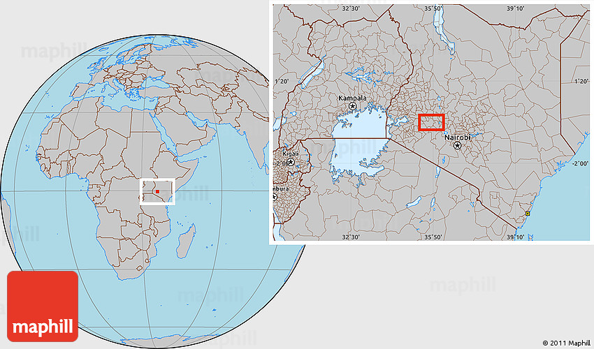 Maphill is a collection of map images. This image combines a gray map with the globe centered on Mkuki. Use the buttons under the image to switch to different map types.
