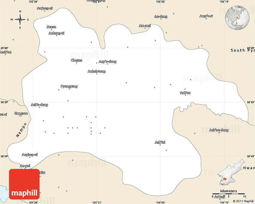 Maphill is a collection of map graphics. This simple outline map of Pyongyang is one of these images. Use the buttons under the image to switch to more comprehensive and detailed map types.