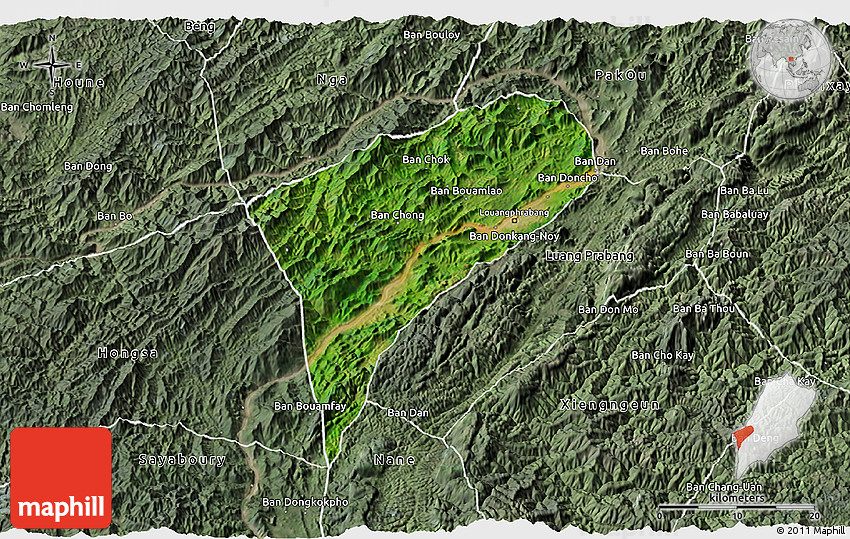 The 3D satellite map represents one of several map types and styles available. Look at Chomphet, Luang Prabang, Laos from different perspectives.