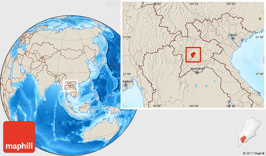 Maphill is a collection of map images. This image combines a shaded relief map with the globe centered on Xiengngeun. Use the buttons under the image to switch to different map types.