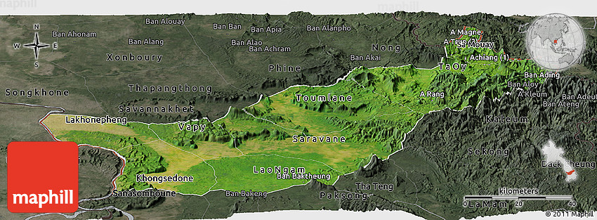 Maphill is a collection of map images. This perspective view of Saravane at an angle of 30° is one of these images. Use the Detailed button under the image to switch to a detailed map.
