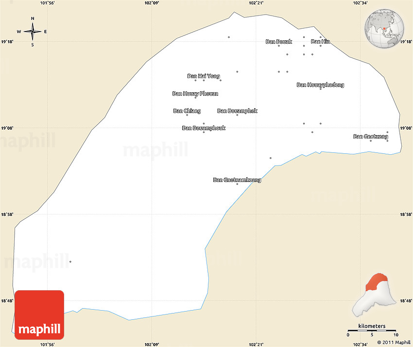 The simple classic style outline map represents one of several map types and styles available. Look at Kasy, Vientiane, Laos from different perspectives.
