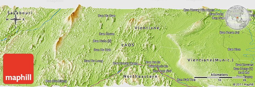 Sure, this physical panoramic map is nice. But there is good chance you will like other map styles even more. Select another style in the above table. See Ban Phônsoung and Vientiane from a different view.