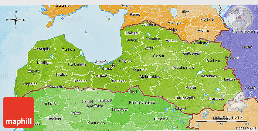Use the buttons for Facebook, Twitter or Google+ to share a link to this Latvia map. Maphill is the largest map gallery on the web. But the number of maps is certainly not the only reason to visit Maphill.