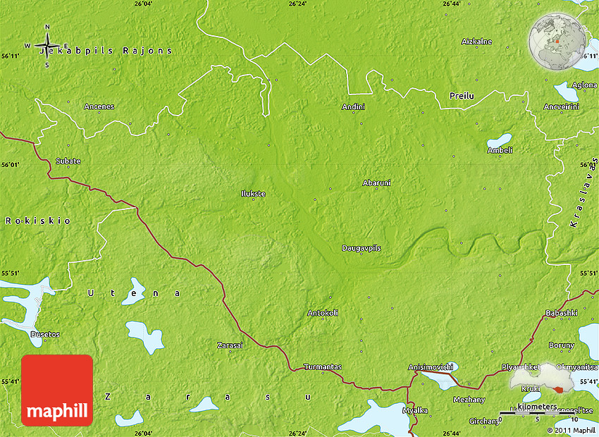 Maphill is a collection of map images. This physical map of Daugavpils is one of them. Click on the Detailed button under the image to switch to a more detailed map.