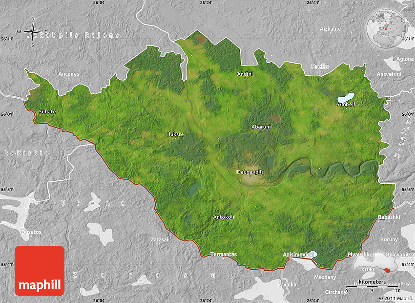 Maphill is a collection of map images. This satellite map of Daugavpils is one of them. Click on the Detailed button under the image to switch to a more detailed map.