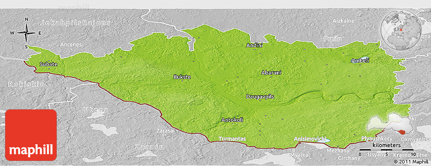 The panoramic physical map represents one of many map types and styles available. Look at Daugavpils from different perspectives.