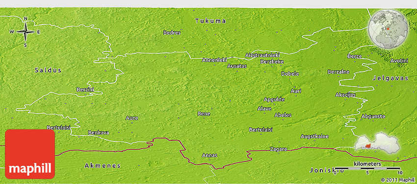The panoramic physical map represents one of many map types and styles available. Look at Dobeles from different perspectives.