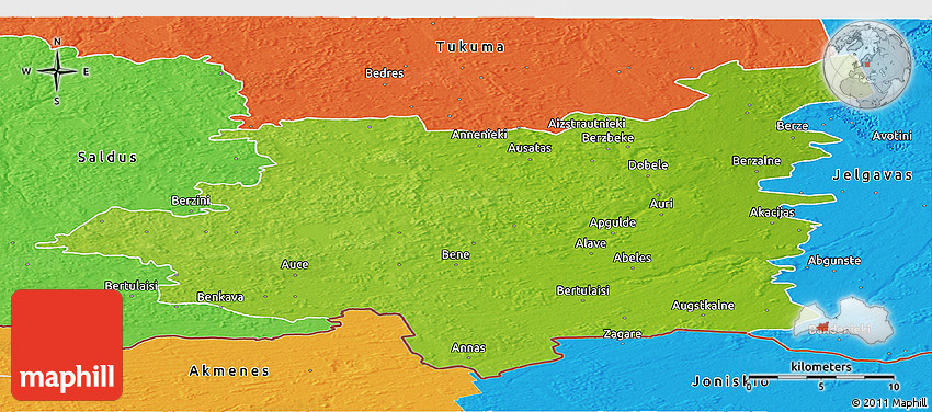 The panoramic physical map represents one of many map types and styles available. Look at Dobeles from different perspectives.