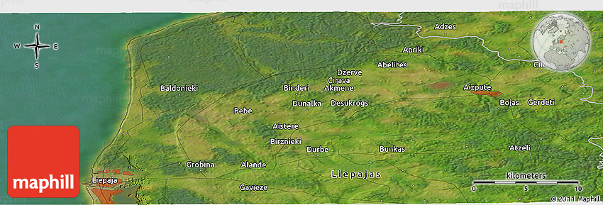 Sure, this satellite panoramic map is nice. But there is good chance you will like other map styles even more. Select another style in the above table. See Dunalka and Liepajas from a different view.