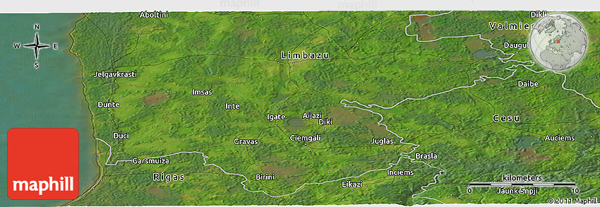 The panoramic satellite map represents one of many map types and styles available. Look at Inte, Limbazu, Latvia from different perspectives.