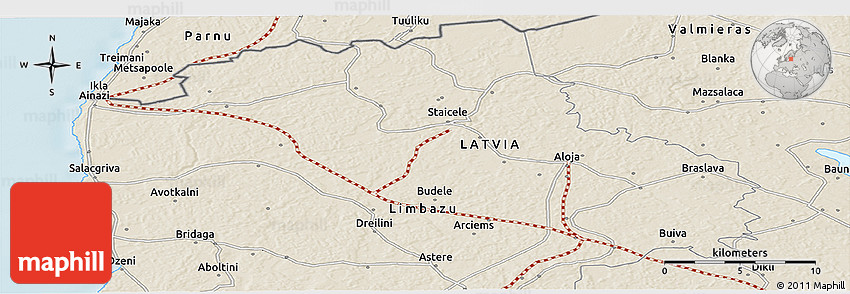 The panoramic shaded relief map represents one of many map types and styles available. Look at Limšēni, Limbazu, Latvia from different perspectives.