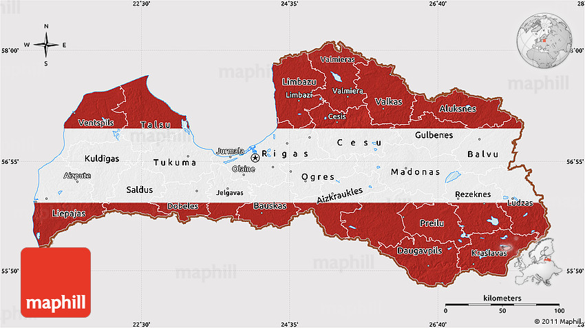 Embed the above flag map of Latvia into your website. Enrich your blog with quality map graphics. Make the web a more beautiful place.