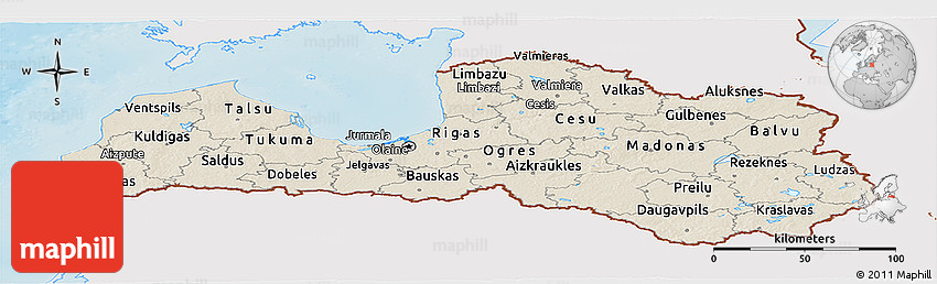 Use the buttons for Facebook, Twitter or Google+ to share a link to this Latvia map. Maphill is the largest map gallery on the web. But the number of maps is certainly not the only reason to visit Maphill.