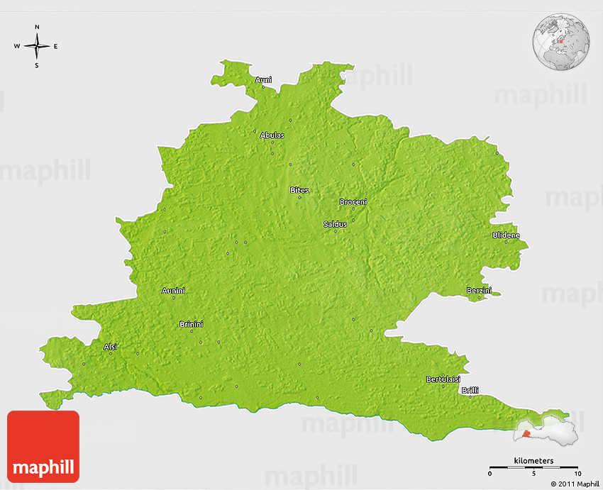 The 3D physical map represents one of many map types and styles available. Look at Saldus from different perspectives.