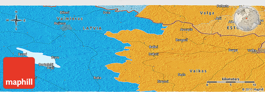 The panoramic political map represents one of many map types and styles available. Look at Veckārķi, Valkas, Latvia from different perspectives.