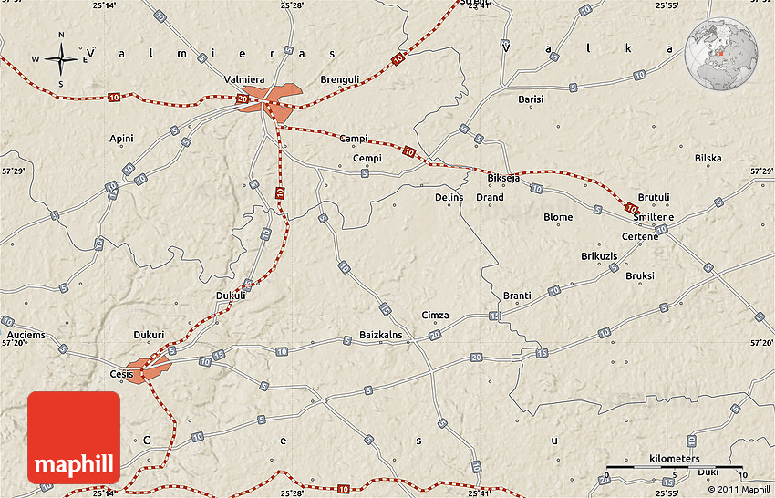 Sure, this shaded relief map is nice. But there is good chance you will like other map styles even more. Select another style in the above table. See Kaugurieši and Valmieras from a different view.