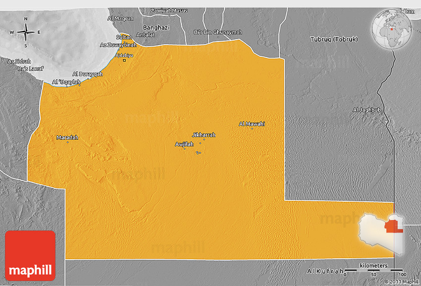 The 3D political map represents one of many map types and styles available. Look at Ajdabiya (Agedabia) from different perspectives.