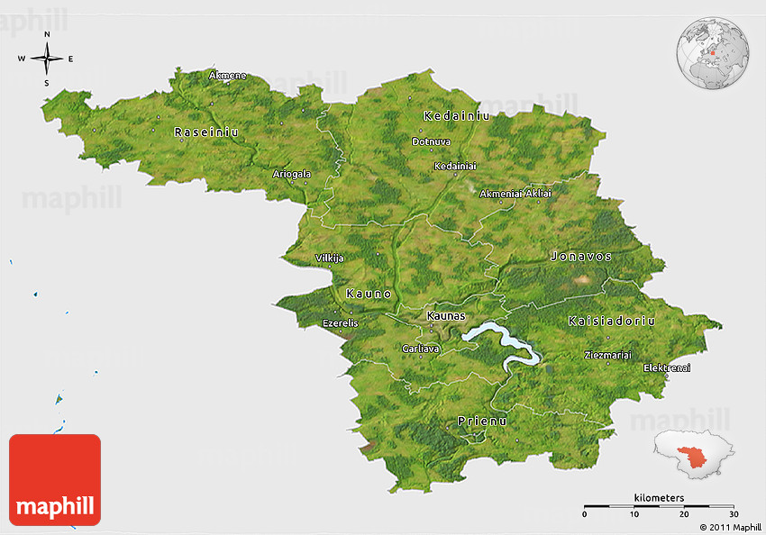Satellite map shows the Earth's surface as it really looks like. The above map is based on satellite images taken on July 2004. This satellite map of Kaunas is meant for illustration purposes only. For more detailed maps based on newer satellite and aerial images switch to a detailed map view.