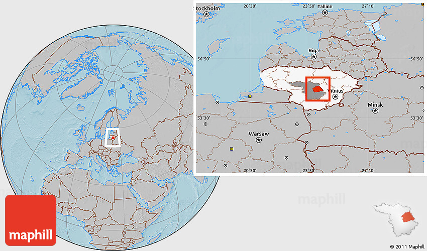 Maphill is a collection of map images. This image combines a gray map with the globe centered on Jonavos. Use the buttons under the image to switch to different map types.
