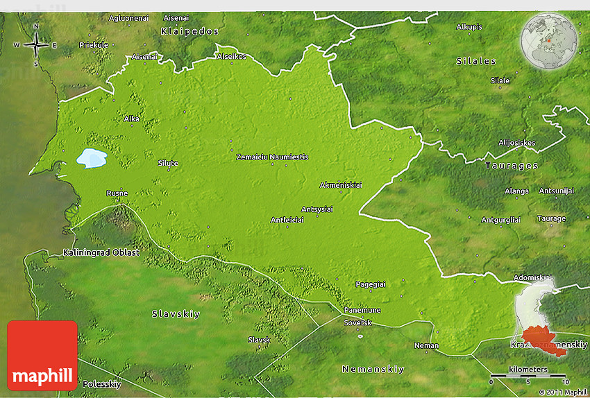 The 3D physical map represents one of several map types and styles available. Look at Siltues, Klaipeda, Lithuania from different perspectives.