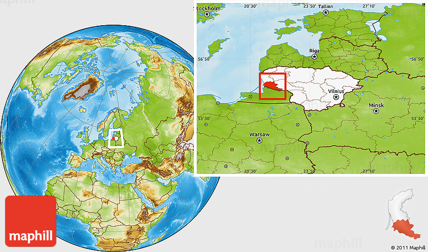 Maphill is a collection of map images. This image combines a physical map with the globe centered on Siltues. Use the buttons under the image to switch to different map types.