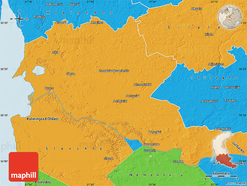 The flat political map represents one of several map types and styles available. Look at Siltues, Klaipeda, Lithuania from different perspectives.