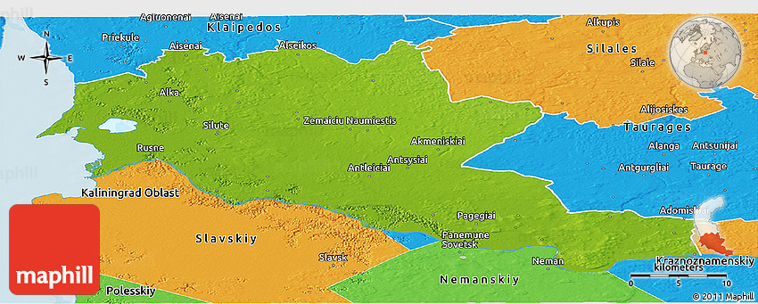 The panoramic physical map represents one of several map types and styles available. Look at Siltues, Klaipeda, Lithuania from different perspectives.