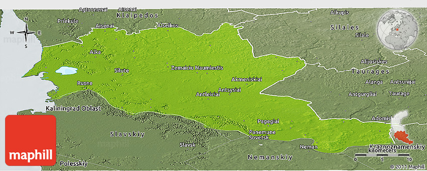 The panoramic physical map represents one of several map types and styles available. Look at Siltues, Klaipeda, Lithuania from different perspectives.