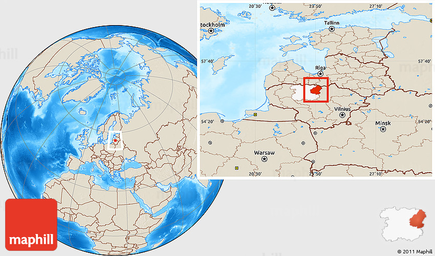 Maphill is a collection of map images. This image combines a shaded relief map with the globe centered on Pakruojo. Use the buttons under the image to switch to different map types.
