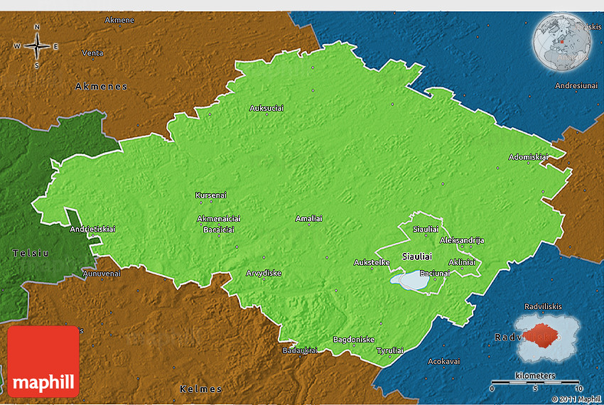 Each map style has its advantages. No map type is the best. The best is that Maphill lets you look at Siauliu from many different perspectives.