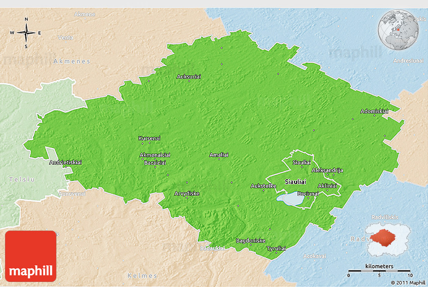 Each map style has its advantages. No map type is the best. The best is that Maphill lets you look at Siauliu from many different perspectives.