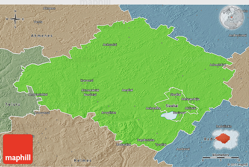 Each map style has its advantages. No map type is the best. The best is that Maphill lets you look at Siauliu from many different perspectives.