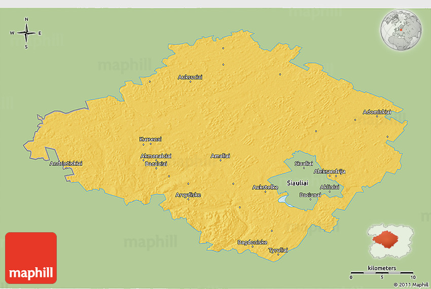 Each map style has its advantages. No map type is the best. The best is that Maphill lets you look at Siauliu from many different perspectives.