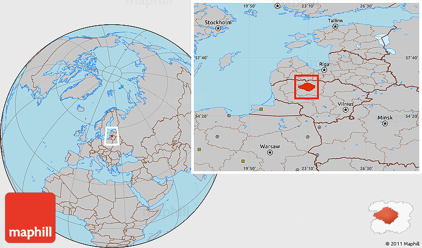 Maphill is a collection of map images. This image combines a gray map with the globe centered on Siauliu. Use the buttons under the image to switch to different map types.