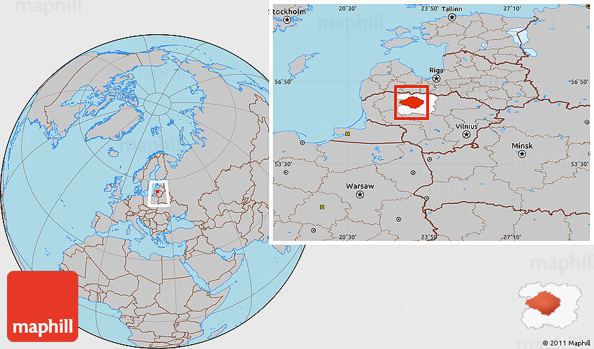 Maphill is a collection of map images. This image combines a gray map with the globe centered on Siauliu. Use the buttons under the image to switch to different map types.