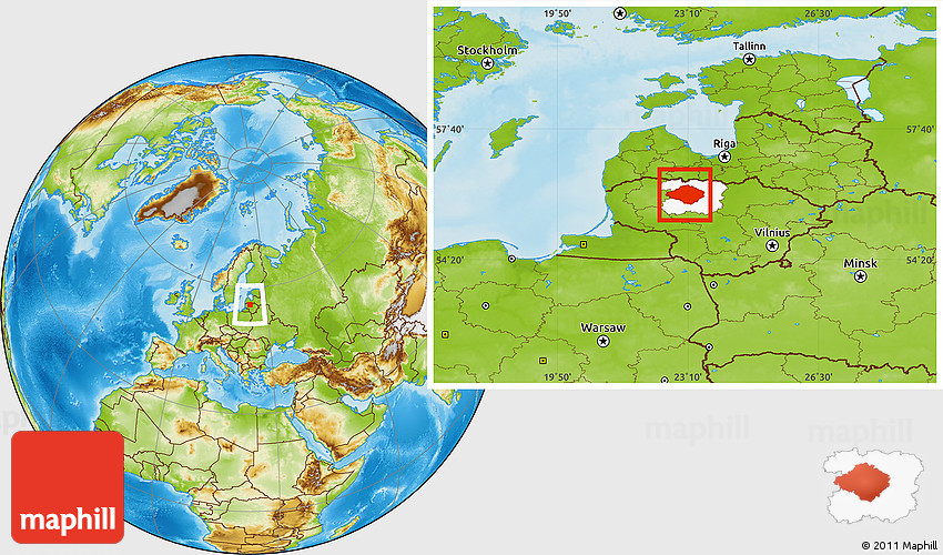 Maphill is a collection of map images. This image combines a physical map with the globe centered on Siauliu. Use the buttons under the image to switch to different map types.