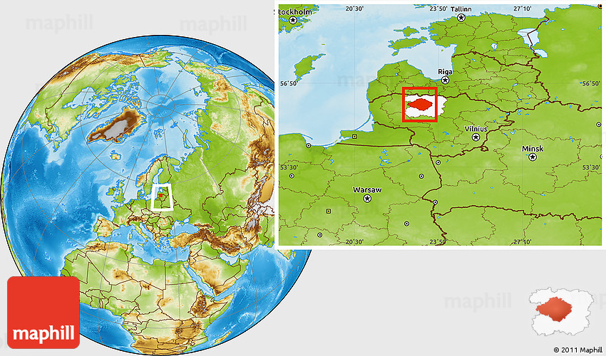 Maphill is a collection of map images. This image combines a physical map with the globe centered on Siauliu. Use the buttons under the image to switch to different map types.